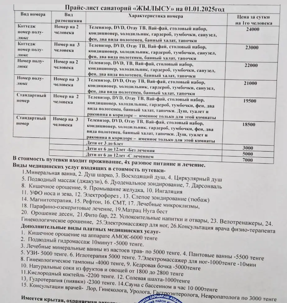 Санаторий Сарыагаш, лечение, питание, путевки